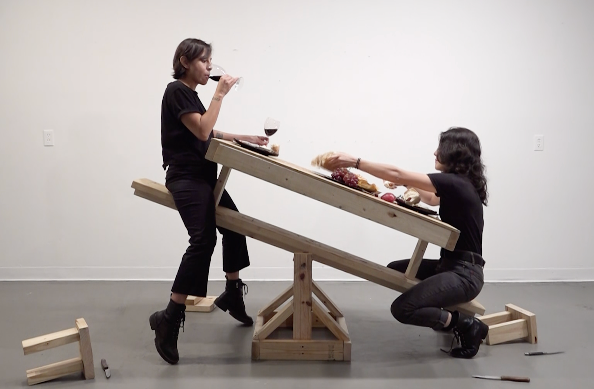 Then I add a seesaw mechanism. Two people must sit and the table becomes an active participant in a conversation without words. The dynamic nature of relationships is highlighted by the performance of a dinner.